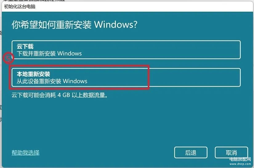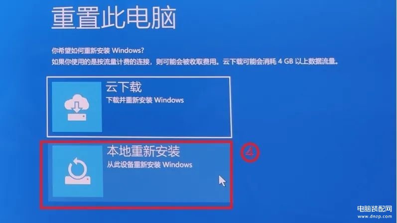 5.选择【本机重新安装】④。