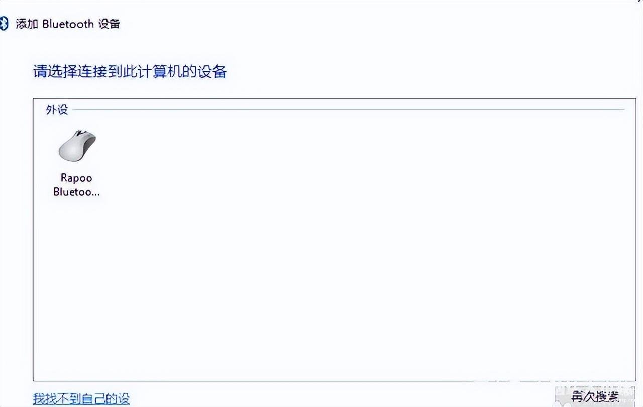 3、在对话框中系统会自动搜索蓝牙设备,选择点击搜索到鼠标,如下图所示: