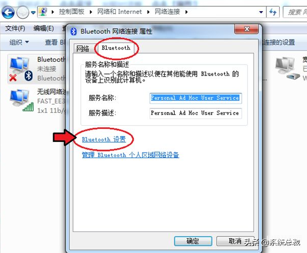 5、发生对话框,点击【Bluetooth】,再点击【Bluetooth设置】。