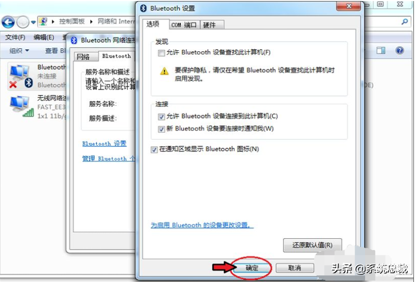 7、进行后,点击【确定】,那样电脑上的蓝牙就打开了。