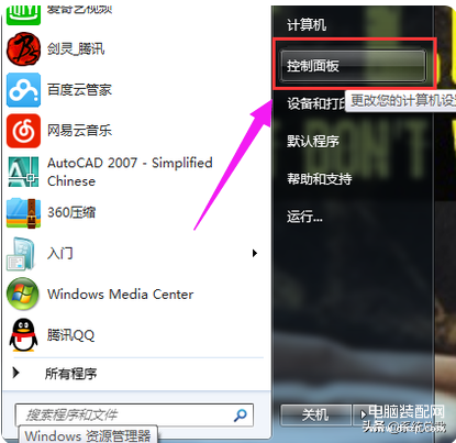1、打开计算机,点击工具栏的【开始】,再点击【控制面板】。