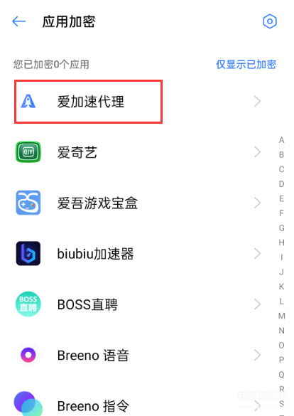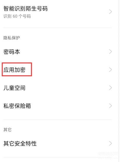 3、找到“应用加密”,我们要使用到隐藏应用就在其中。