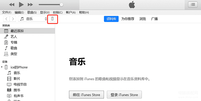 第一步:苹果手机连接在电脑上,打开iTunes,左上角可以看到手机的图标。