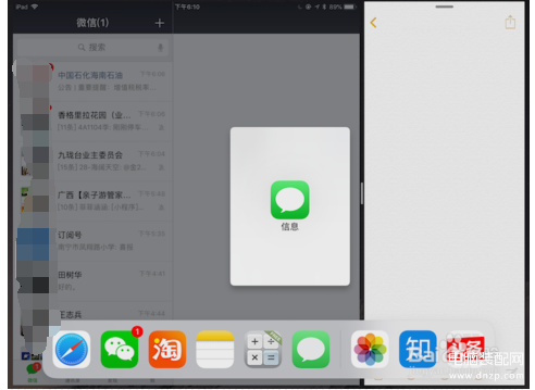 然后从Dock中拖出想打开的第二个APP,拖动到右边的话,可以形成左右分屏: