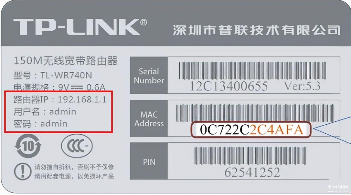 我们可以在该路由器底部的铭牌标签上查看到,如下图: