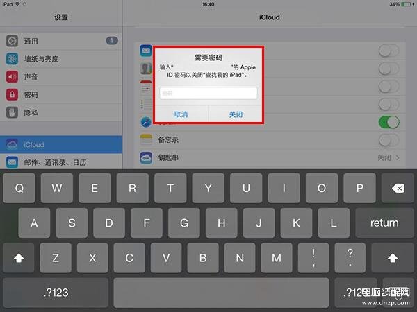 第三步:输入【Apple ID】密码,以关闭“查找我的iPad/iPhone”