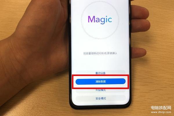 当出现Magic图标时,松开音量上键,接着我们就会来到刷机模式了。在这个模式中,【音量上下键】是控制光标移动,【电源键】是确定按钮,熟悉按钮后就可以开始清理锁屏密码了。