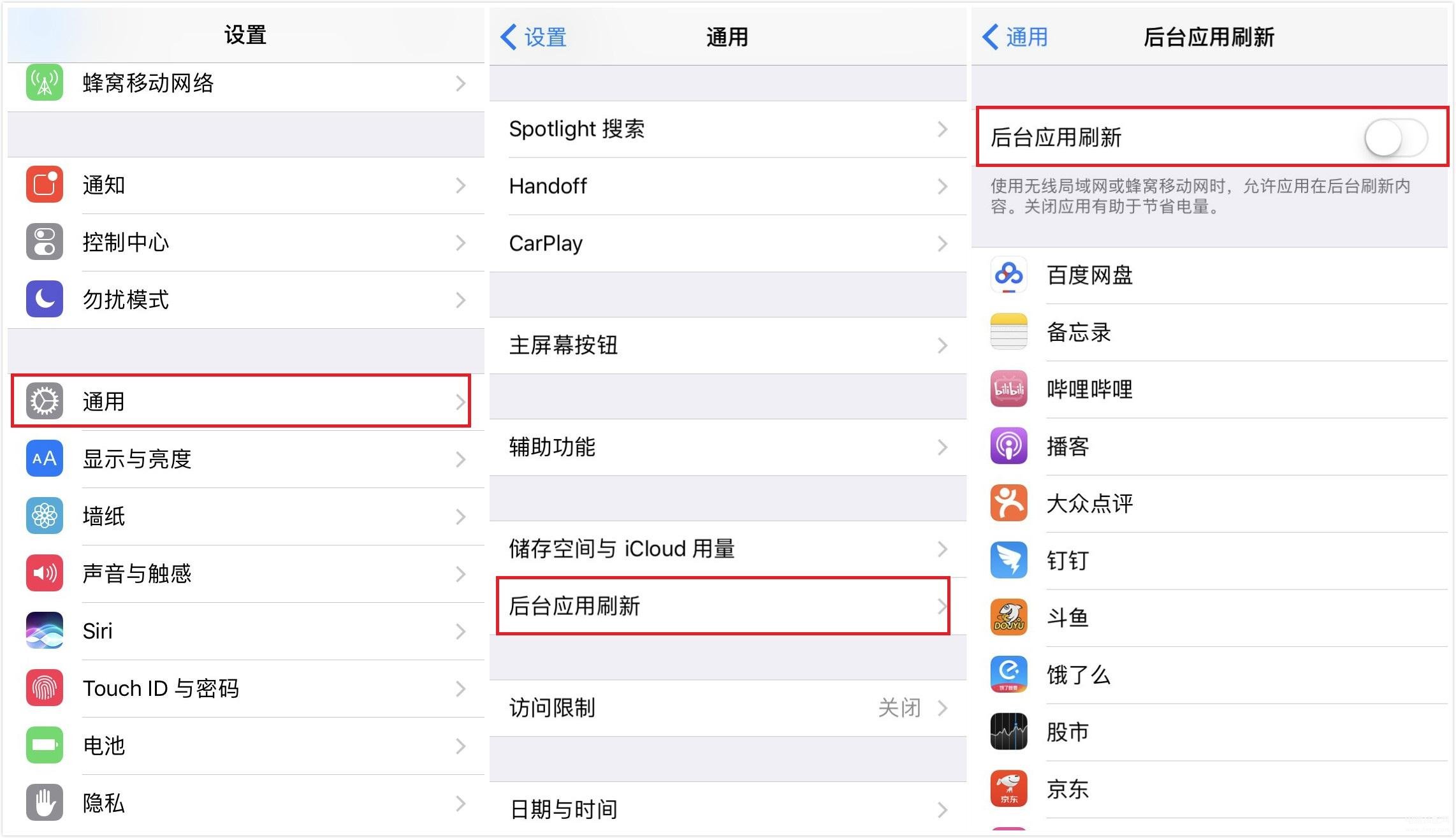与安卓类似,苹果的应用也会在后台运行,这样就导致你的手机无时无刻都在运行中,自然而言手机温度就会升高啦,续航也就下降了,所以,只要把它关闭就可以了。