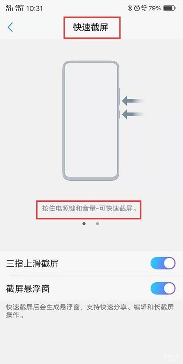 还有一种是三指同时上滑进行截屏,当然了,你需要在快速截屏中将这个功能开启才行。