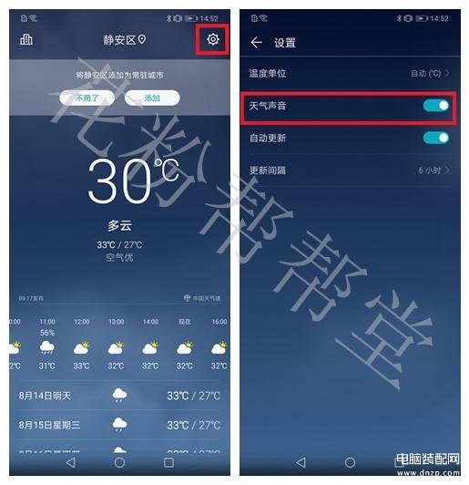 点击右上方设置,点亮天气声音按钮,会根据天气情况给你对应的声音特效。