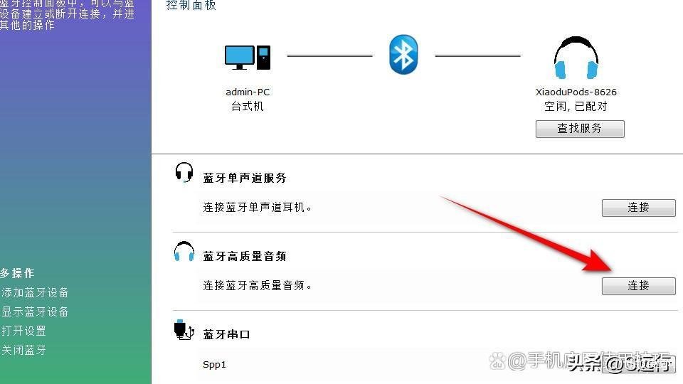 蓝牙适配器安装好驱动后,就可以前往添加连接蓝牙设备了。