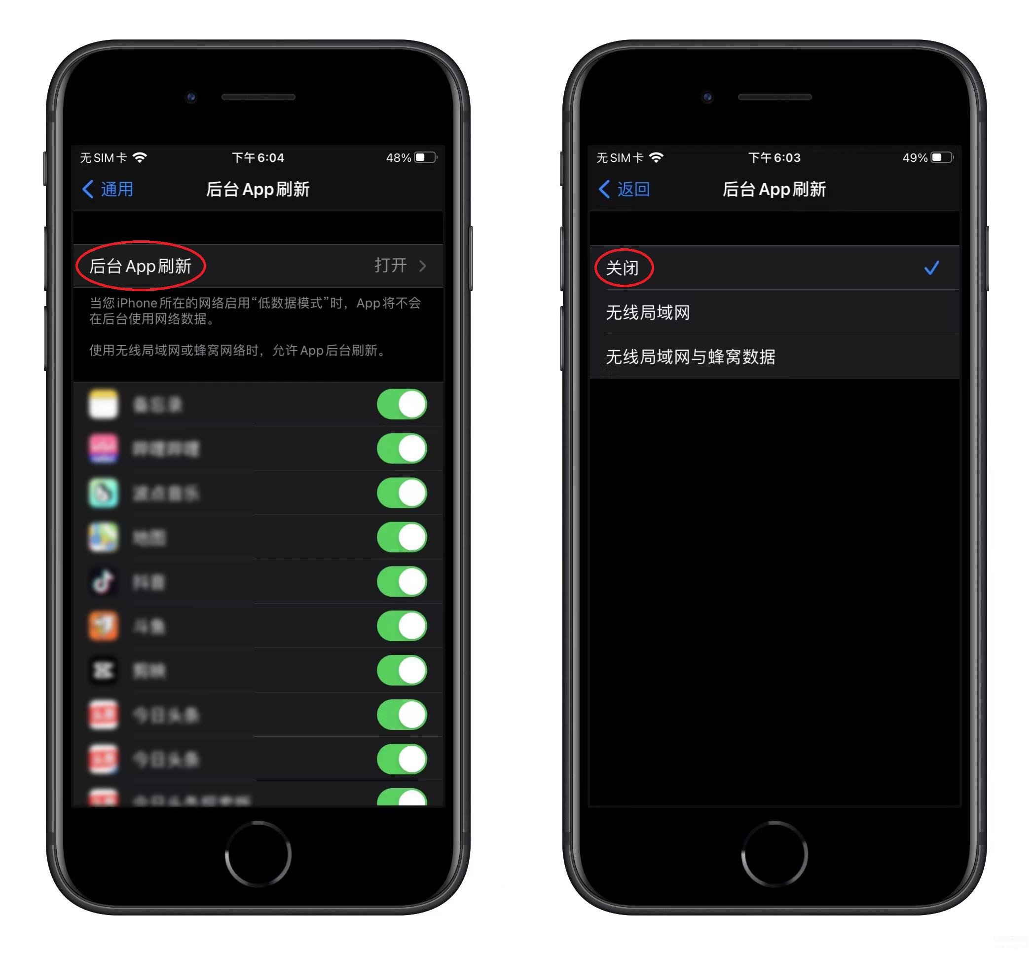 手机上的软件都会默认在后台运行,安装的应用越多,占用的内存越大,影响手机的运行速度,因此关闭后台刷新,不仅减少卡顿还会更省电。