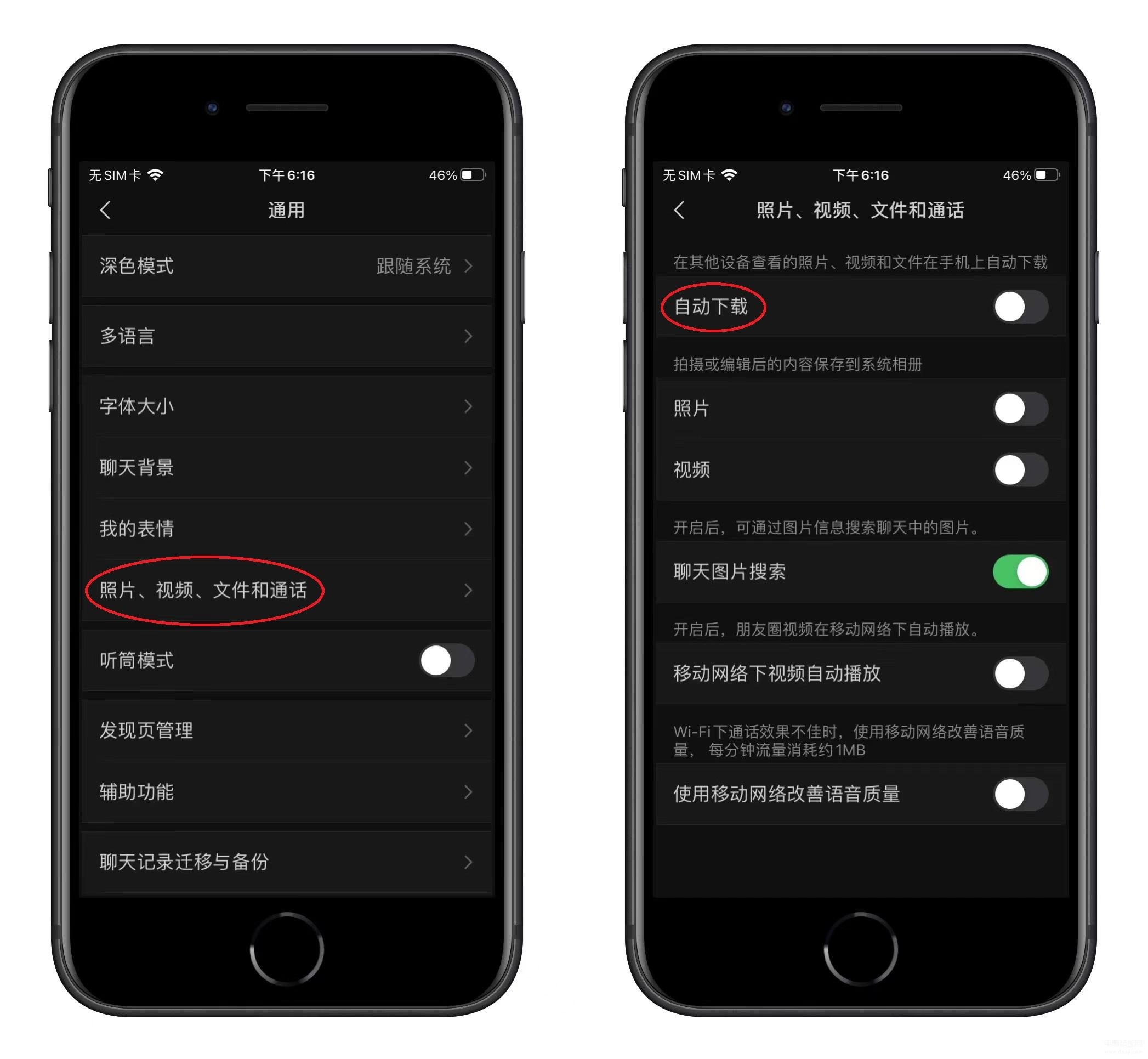微信是最常用的软件,每天使用都要占用空间,平时我们查看过的照片、视频,不管你需不需要,都会自动保存到手机上,一定要关闭自动下载。