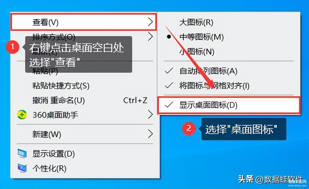 方法1:检查桌面图标是否被隐藏