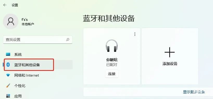 3.右侧点击“添加设备”,添加蓝牙或其他设备。