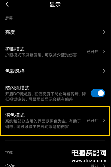 3、最后在显示的界面中找到【深色模式】功能,就能在微信7.0.10测试版中开启黑暗模式