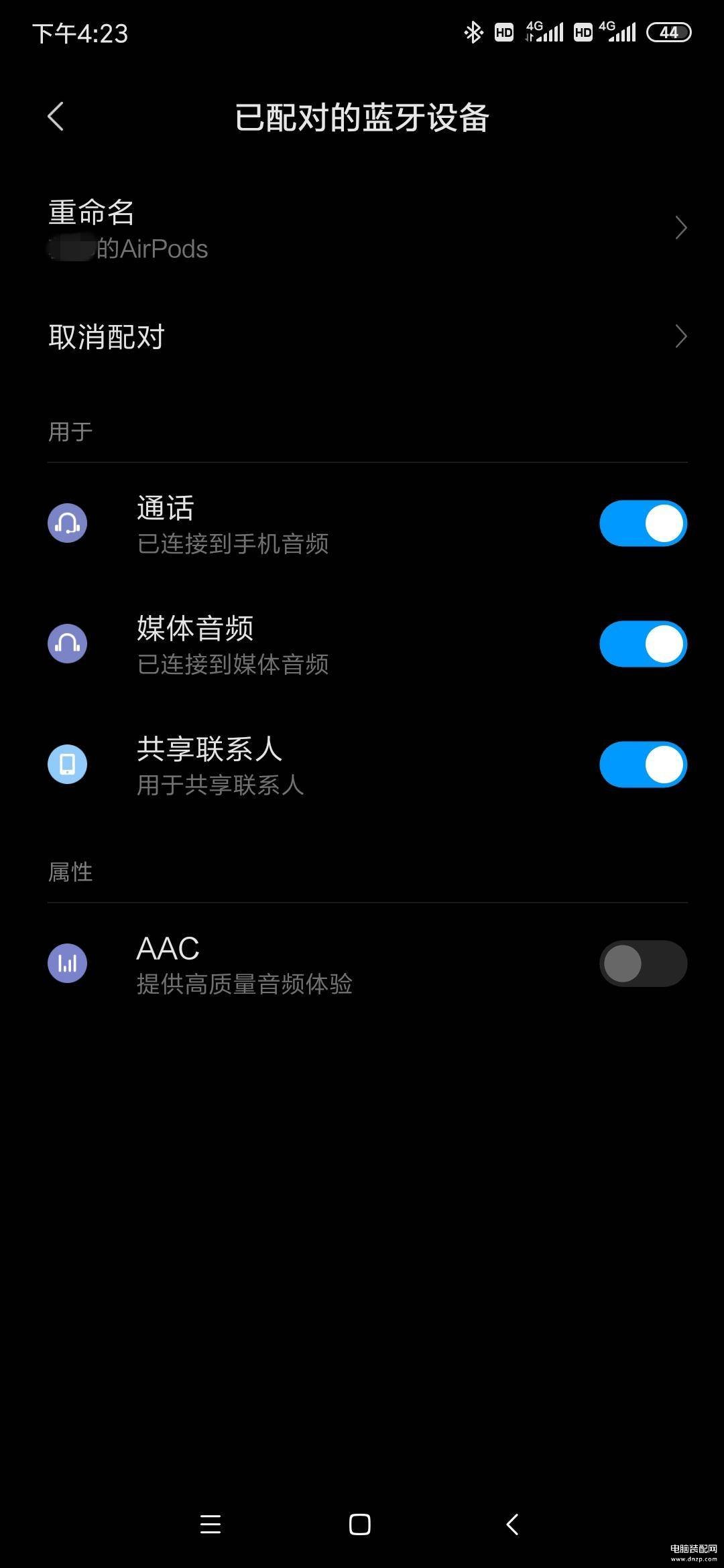 除了支持通话、多媒体音频等,还有AAC提高音频质量可选。
