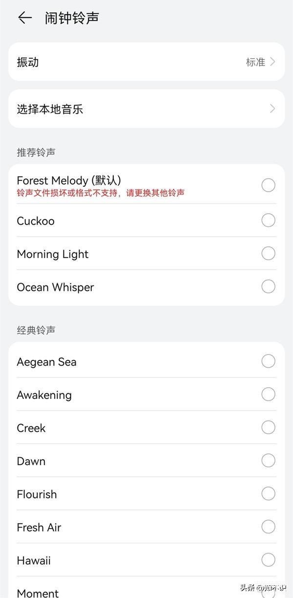 HarmonyOS系统底层虽不同于Android或iOS系统,但在操作逻辑上,为了适应用户习惯,基本上相同,不仅可以给来电设置个性铃声,闹钟也是可以根据需要设置个性铃声的。