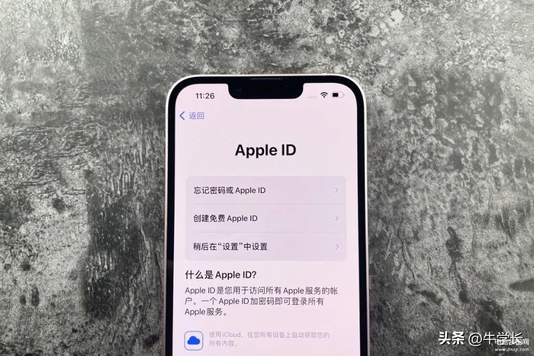 当购入一台新iPhone时,在开机进行激活设置时,会出现 “Apple ID” 界面。
