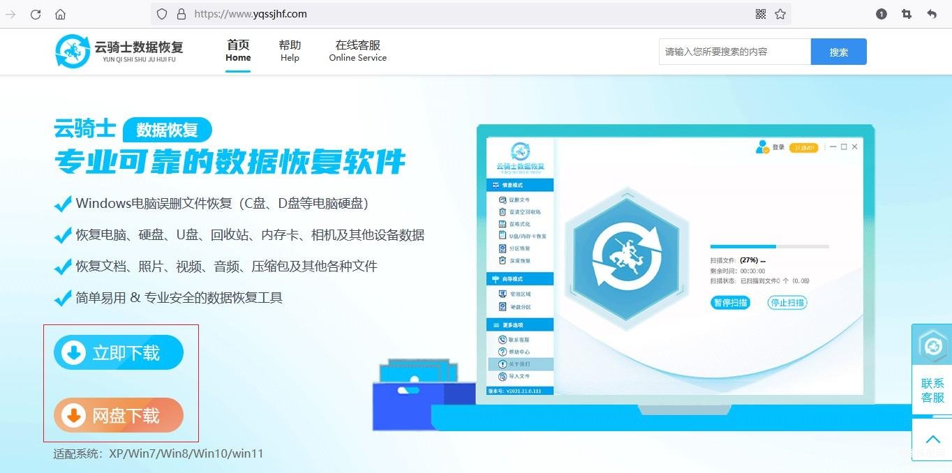 官网上下载云骑士数据恢复软件并在电脑上安装好,记得软件不可下载安装在删除录音文件所在电脑本地磁盘。