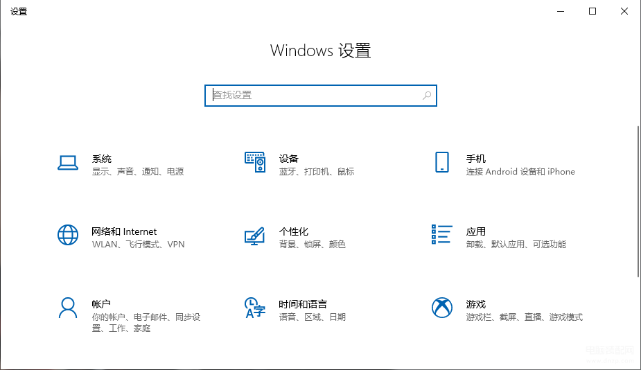 2,通过所有设置即可打开Windows设置窗口。