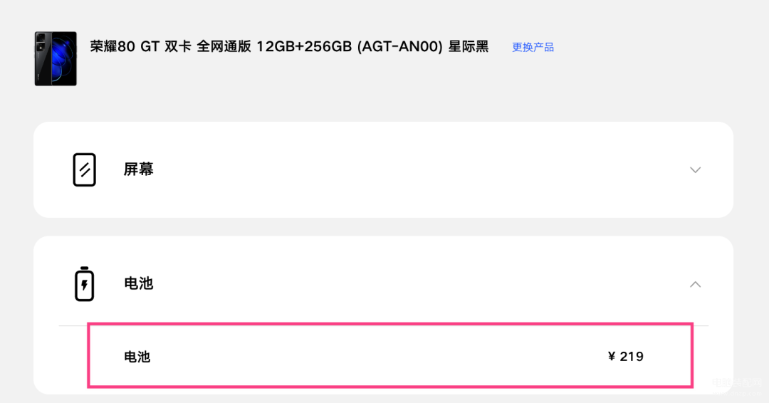 荣耀的电池备件价格方面,最近推出的荣耀80 GT、荣耀80 Pro、荣耀80需要 219元,荣耀80 SE 209元,且还需要80元人工费,最高大致299元。