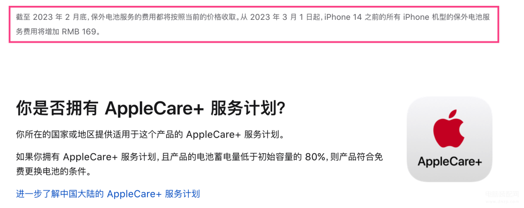 苹果官网显示,截至 2023 年 2 月底,保外电池服务的费用都将按照当前的价格收取。从 2023 年 3 月 1 日起,iPhone 14 之前的所有 iPhone 机型的保外电池服务费用将增加169元。