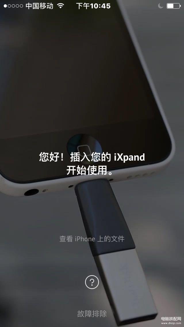 1.首先把U盘插入手机的数据线接口。第一次插入U盘时,会提示安装一个软件(驱动程序)。本文范例U盘是闪迪的。那么应该是这个:iXpand Drive。