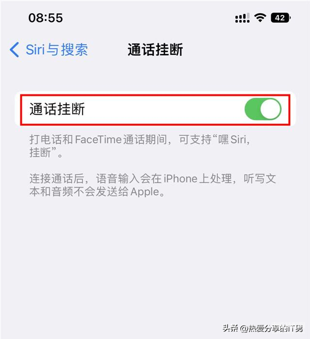 OK,现在你可以在有电话呼叫进来或通话期间通过呼叫“嘿Siri,挂断”,或“嘿Siri,挂断电话”来挂断电话了,是不是比以前方便多了,赶快试试吧。