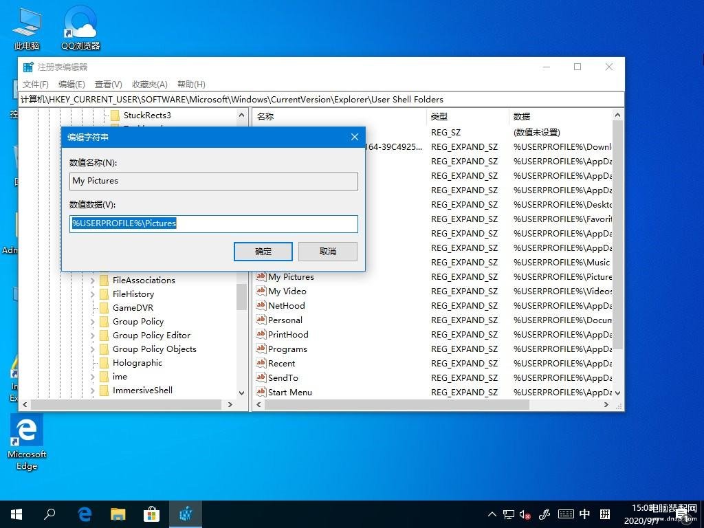 3、打开编辑字符串,在数值数据中输入“%USERPROFILE%\Pictures”;