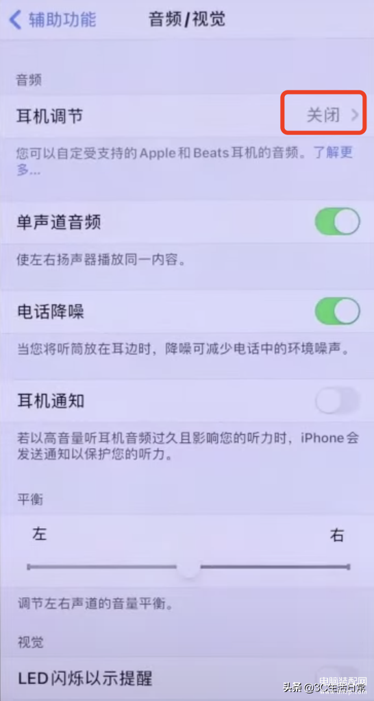 依次打开设置-辅助功能-音频视觉-耳机调节,可以进行调节音频,也可以自定义自己习惯的音频