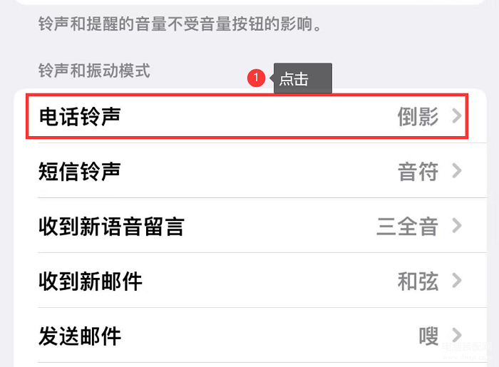 步骤3:在【铃声和振动模式】中,找到【电话铃声】的选项,点击进入。