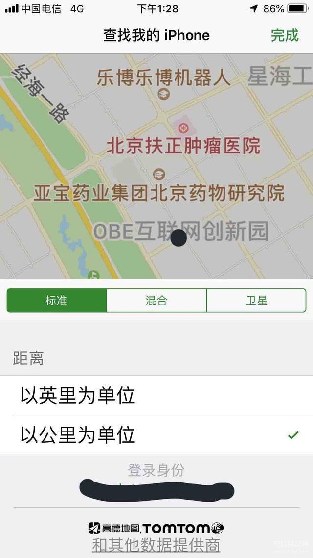3、登录后,选择你要查找的设备,小姑娘我穷,就一个iPhone,所以显示设备就一个,它孤零零的会出现在地图上。
