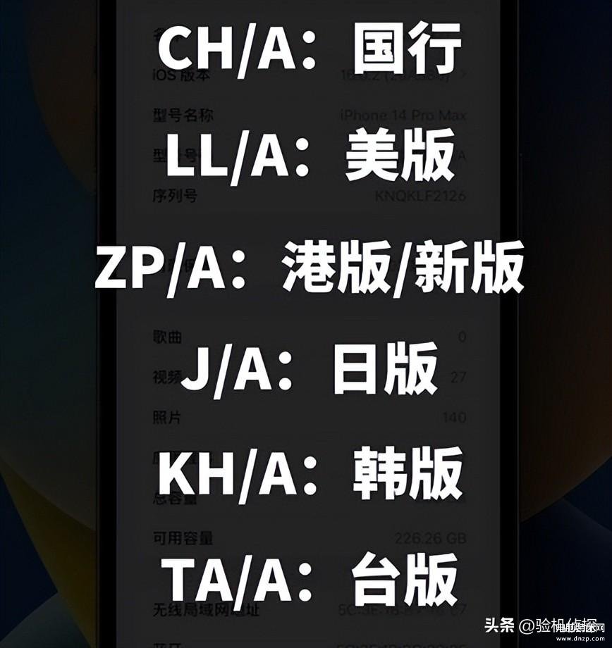 首先我们在我们通过机器内部显示的“序列号”来判断机器产地和类型,在设置→通用→关于本机中,查看“型号号码”一栏中,如果“M”开头是零售机、“N”开头是官换机、“F”开头是官方机、“3”开头是演示机;再看后面,“CH”结尾是国航、“LL”结尾是美版、“ZP”结尾是港版或新加坡版,“J”结尾是日版,“TH”结尾是韩版,“TA”结尾是台版。