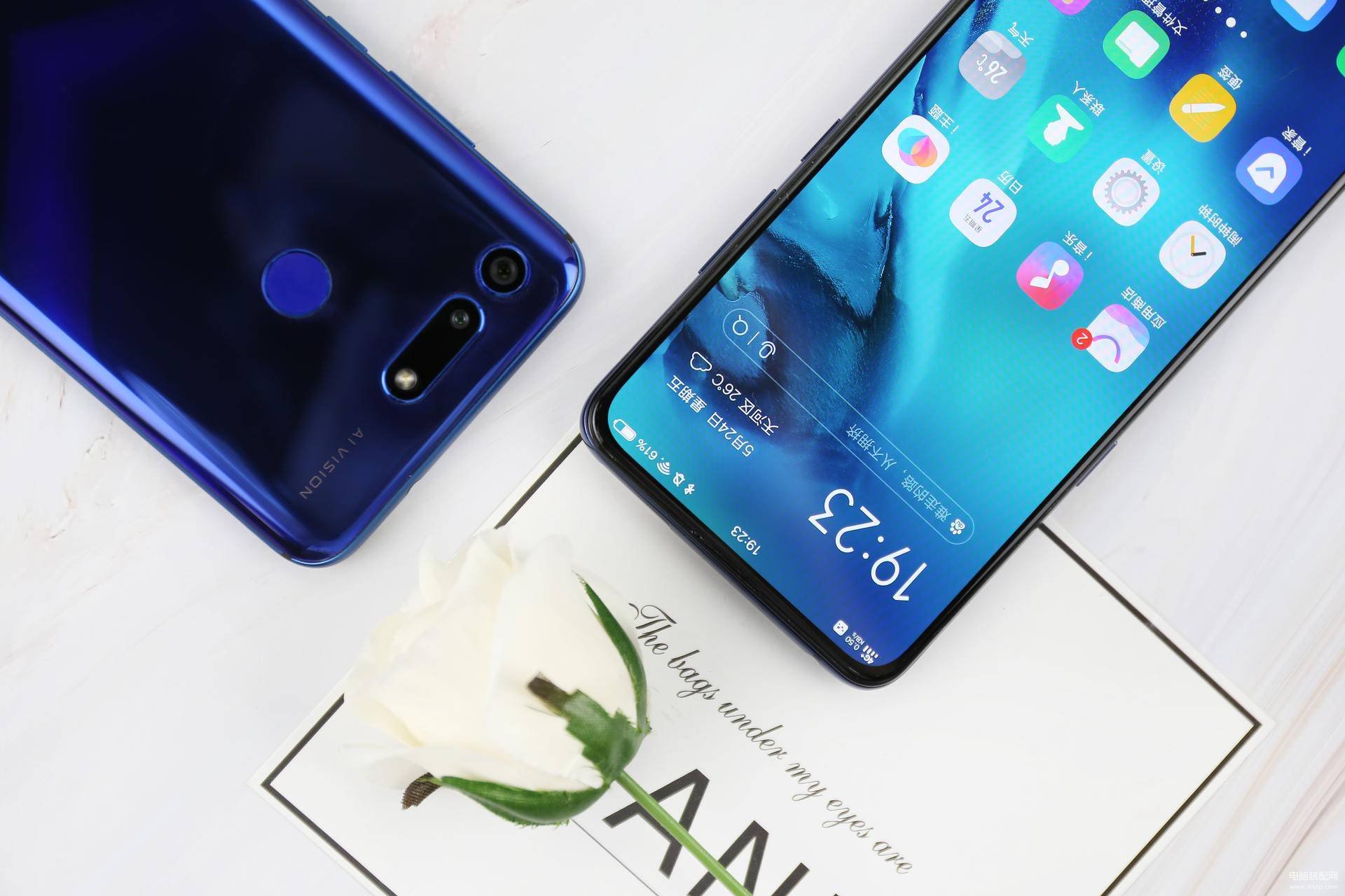 针对两者的外观设计,vivo X27与荣耀V20采用了时下两种迥异的设计方案。vivo X27在外观设计上延续家族式的升降全面屏为主,搭载了一块6.39英寸的Super AMOLED屏幕,拥有高达91.6%的超高屏占比,并且正面无开槽的设计,在视觉观感方面着实不错。