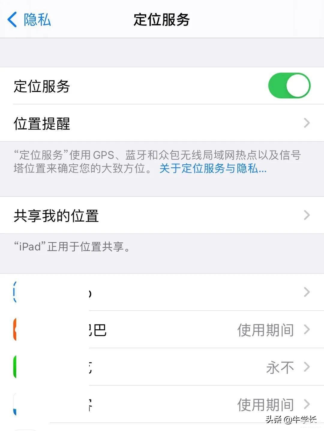 打开【设置】-【隐私】-【定位服务】,就可以关闭所有APP或选择关闭部分APP的定位功能。