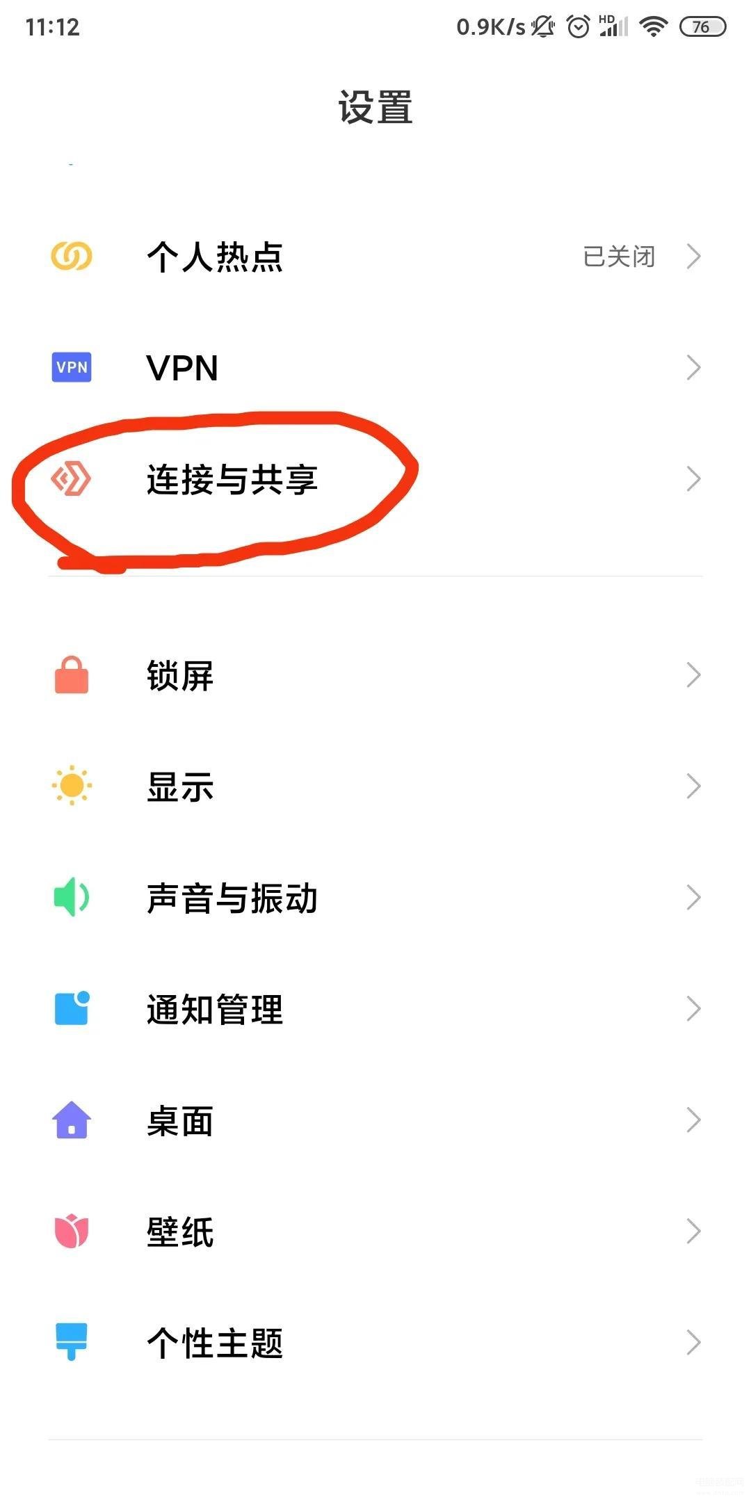 1.打开手机中的设置界面,找到里面的连接与共享,并点进去。