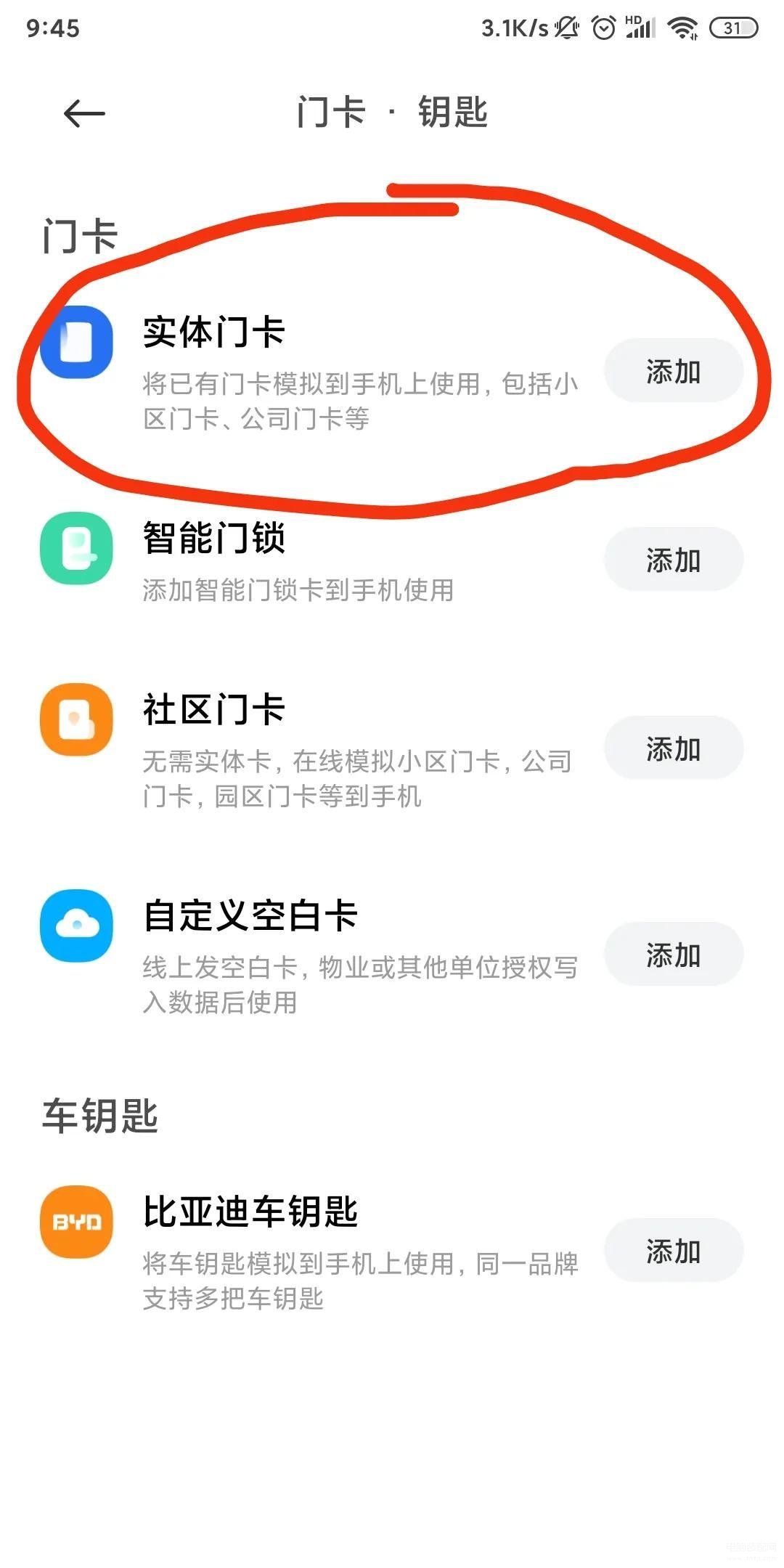 5.点击实体门卡的添加选项。