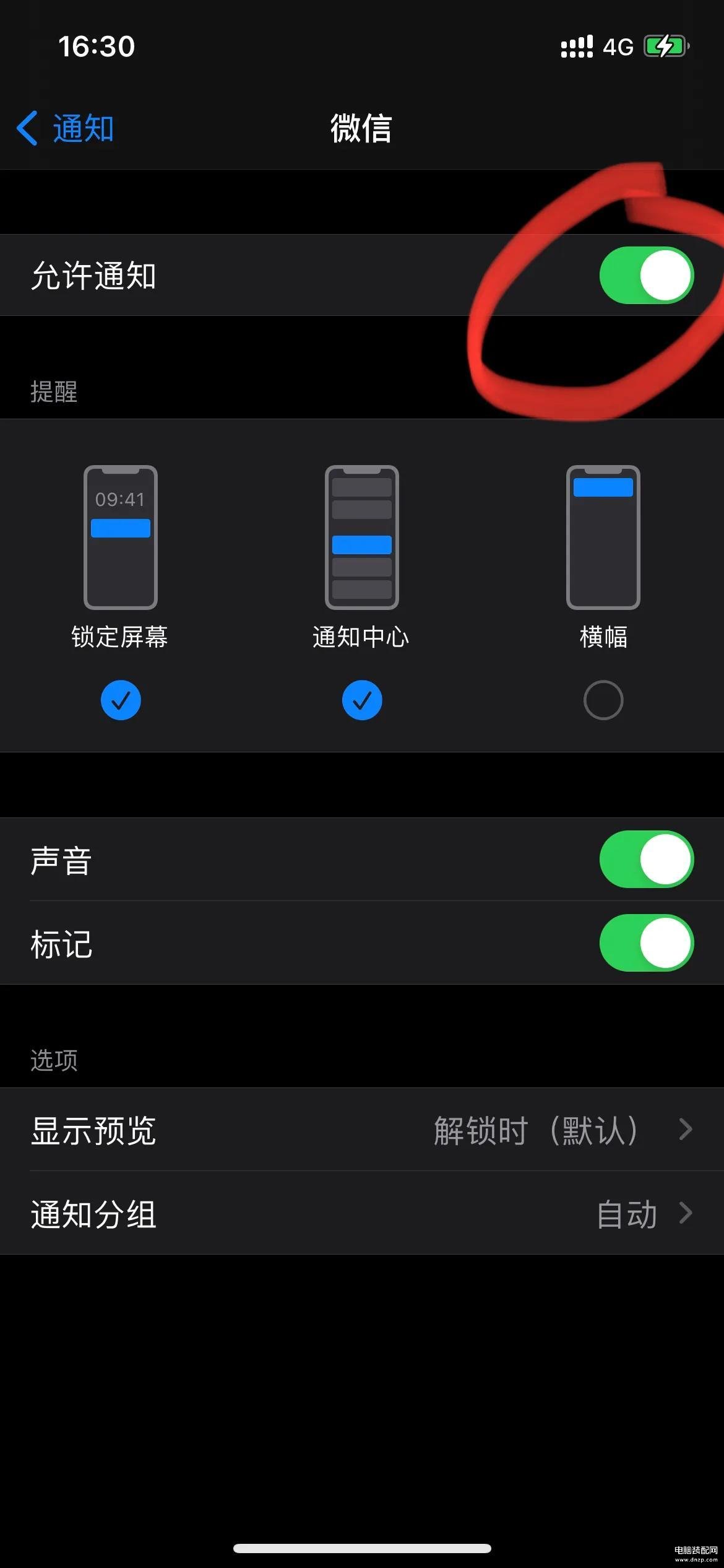 2.打开设置-通知-微信,关闭第一行允许通知(图中已圈中);