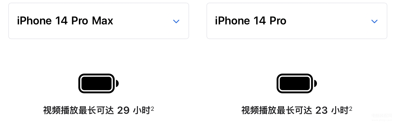 首先,电池数据方面。iPhone 14 Pro为3200毫安,iPhone 14 Pro Max为4323毫安,电池容量足足多了百分之30以上。从官方的视频播放时长数据来看,14Pro Max也是足足多出了6个小时的播放时长。真实使用体验,iPhone 14 Pro勉强能够保持一天一充,iPhone 14 Pro Max 正常使用一天一充毫无问题,甚至可以做到两天一充。