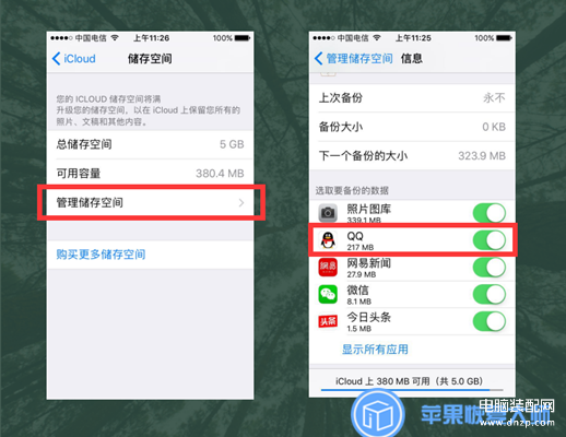 点击【设置】——【iCloud】——【储存空间】——【管理储存空间】——关闭【QQ】按钮