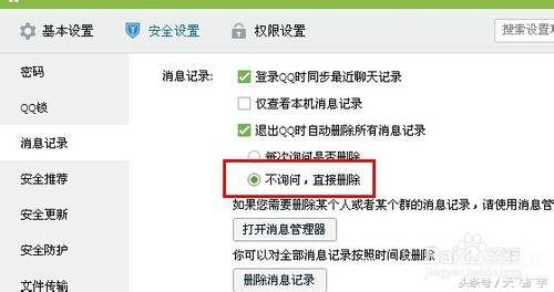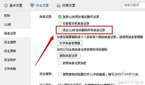 然后在打开的右侧再勾选“退出QQ时自动删除所有消息记录”: