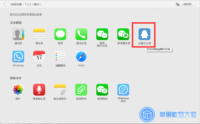 之前小编有提到,利用iCloud或者iTunes的备份,可以整机恢复出你的QQ聊天记录。如果在专业的数据恢复工具中打开相应备份,还可以单项恢复出QQ聊天记录,这给误删重要聊天记录的朋友们带来了一线希望。
