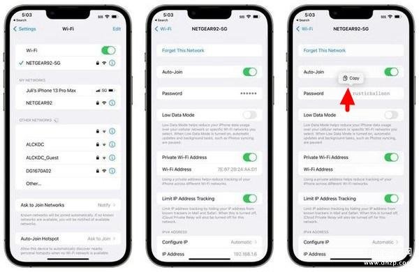 iPhone 查看 Wifi 密码功能还是很实用的,比如忘记自家WiFi密码,可以通过这种方法轻松找回。另外,iOS 16查看到的 WiFi 密码还可以复制分享给他人,如图所示。