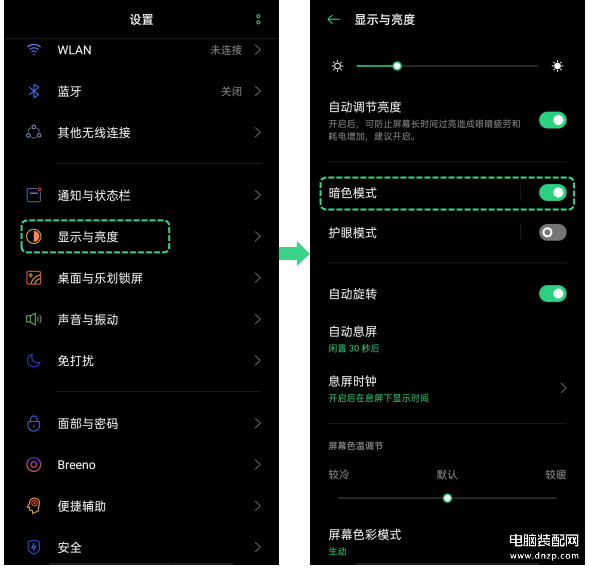 进入“设置 > 显示与亮度 > 暗色模式”打开开关即可启用暗色模式。暗色模式不仅能够减低屏幕功耗,减少发热的可能,还能保护眼睛,带来更好的阅读体验
