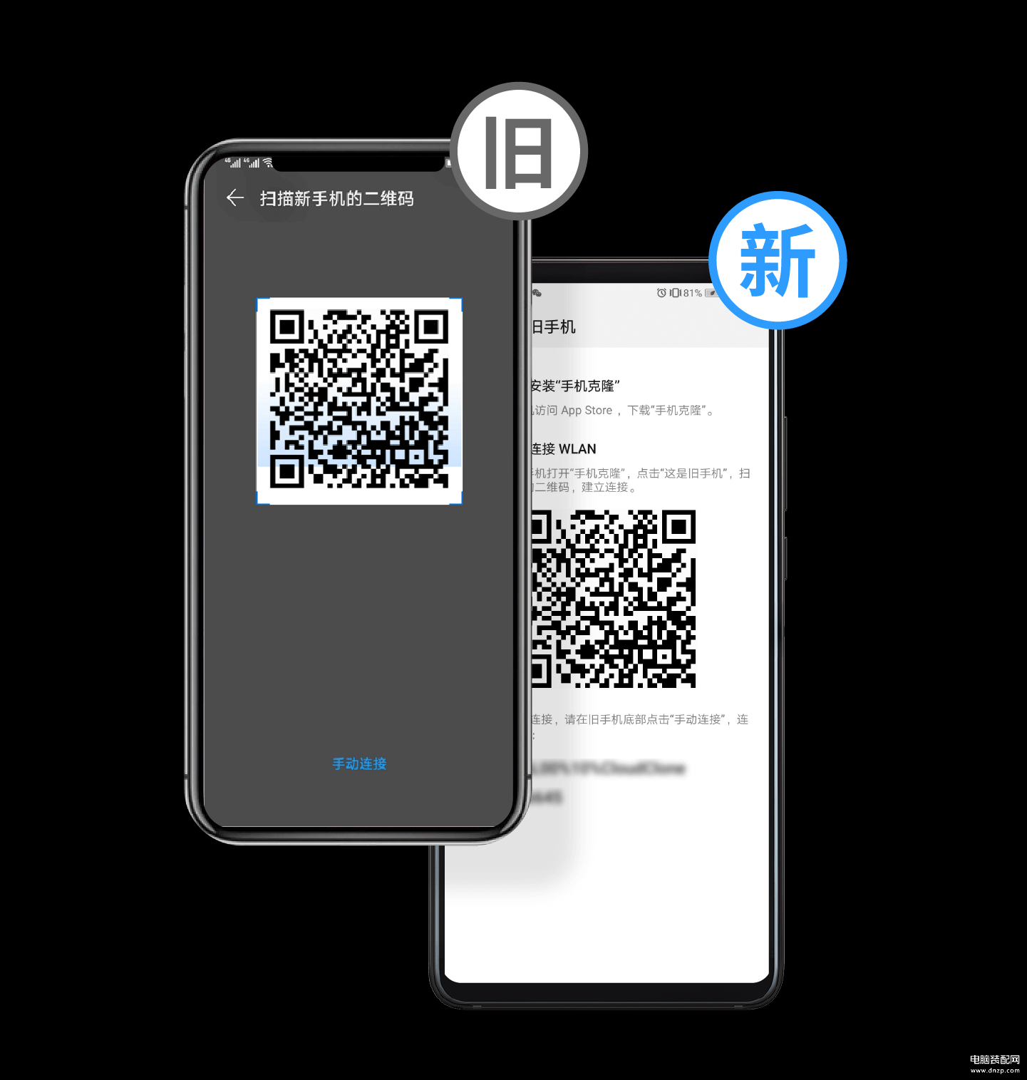 2.用旧手机扫描新手机上的二维码,建立连接。