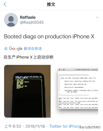 不知道为什么,他的评论区都不对任何人作出回应,但对他技术来讲,让我们感到很惊讶,除了双引导和降级,他还对iPhoneX做过启动诊断,这些分享内容都是早期分享。