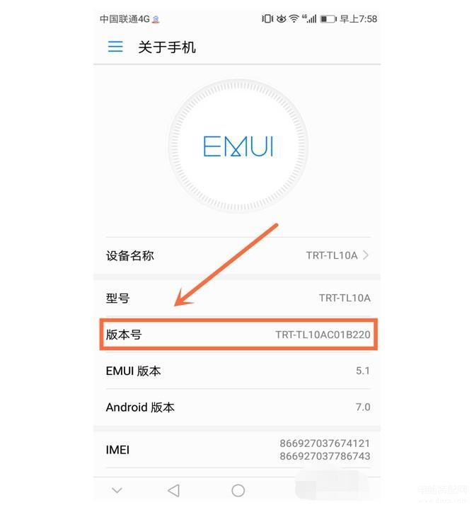 3、找到手机版本号选项,连续点击七次“关于手机”选项中的“版本号”,设置显示隐藏的开发者选项(后期安卓系统为了避免用户误设置,开发者选项是隐藏选项)