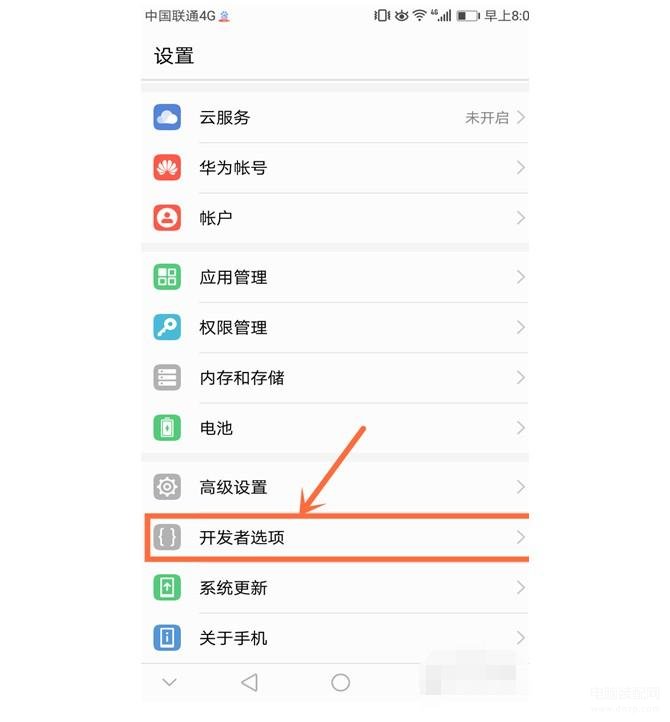 4、按下手机导航栏的返回键,就可以看见选项中的“开发者选项”,点击选择进入