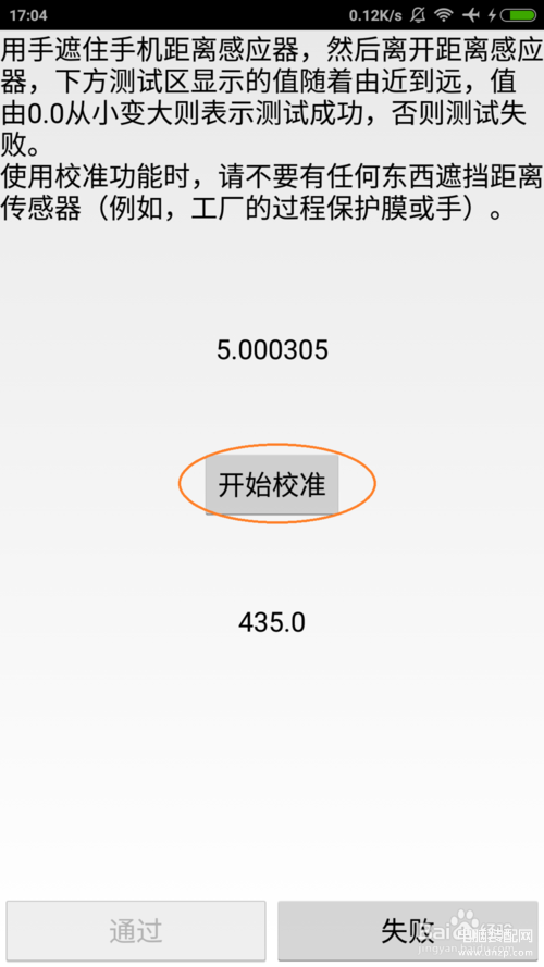 3.按照屏幕上方的操作提示,不要遮挡住距离感应器,然后点击“开始校准”